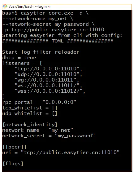 easytier-core.exe -d -p tcp://public.easytier.cn:11010