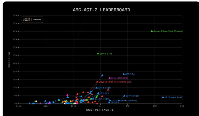 ARC-AGI-2 专门用全是没见过的新奇智力题,来检验模型是不是能真正举一反三,而不是靠死记硬背。
