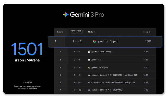 Gemini 3 拿到了 1501 分,遥遥领先。
