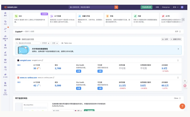 如果你不是纯 SEO,而是做网站运营、内容、营销、增长、广告,Semrush 是最省心的选择。