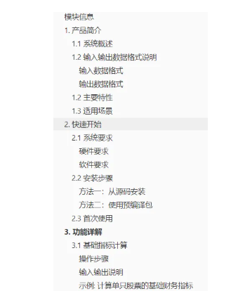 下面是我让AI生成的用户手册的信息,包含了模块介绍,快速开始(软硬件要求、安装部署、首次使用)、功能详解和常见问题解答(FAQ),像模像样的。