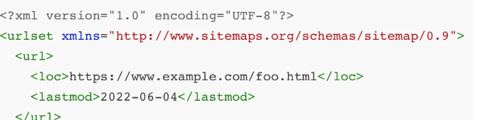 - 文本站点地图即每行包含一个网址的普通 txt 文件,XML 站点地图如下所示