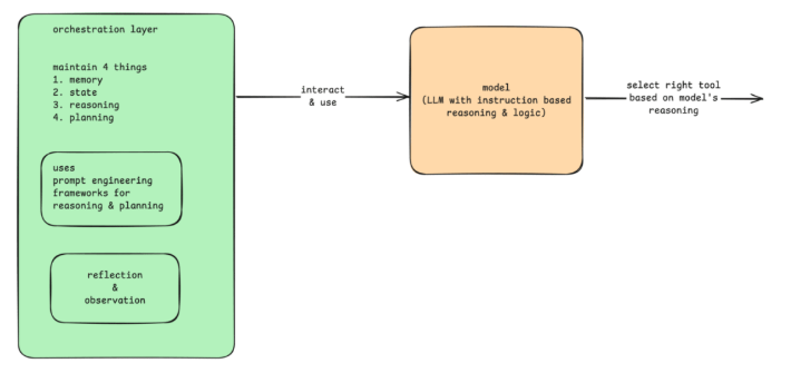 该模型决定采取哪些行动,并使用特定工具执行这些行动。