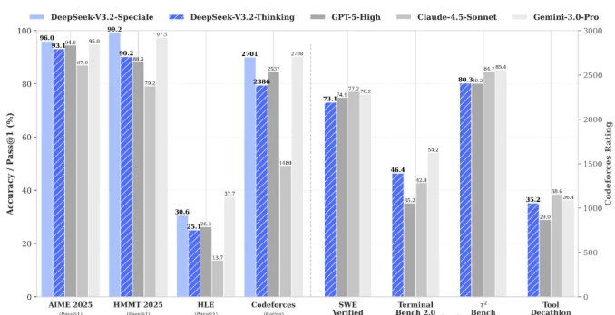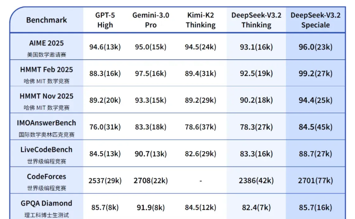 DeepSeek-V3.2聚焦于平衡推理能力与输出长度,专为日常问答、通用Agent任务及真实应用场景下的工具调用量身打造。该模型在推理能力上比肩GPT-5,虽略逊于Gemini-3.0-Pro,但在实用性和效率上实现了显著突破。
