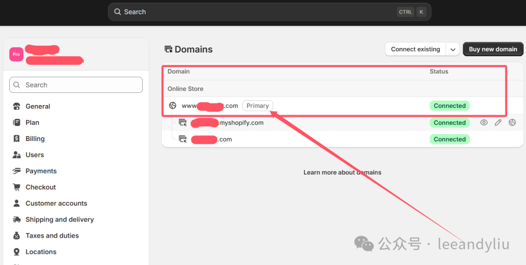 最后请记住将www.xxxheels.com作为primary domain.而不是 xxxheels.myshopify.com 。