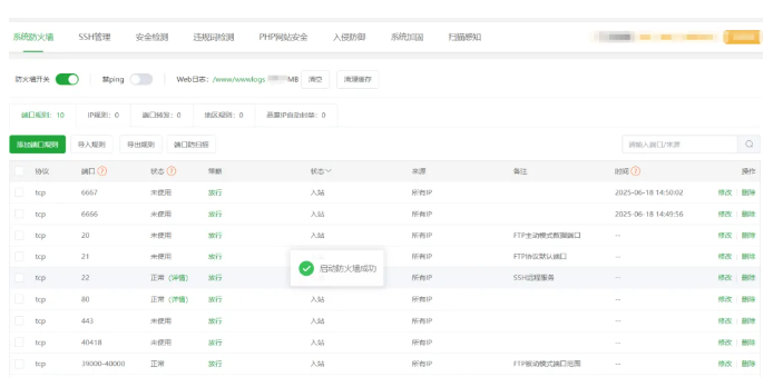 系统自带的防火墙,大负责端口的进出管理,允许添加端口规则,禁Ping访问。