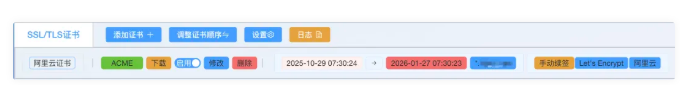 支持自动申请和续签 Let's Encrypt、ZeroSSL 等免费 SSL 证书,支持多家 DNS 服务商的 API 验证。