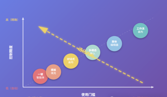 3.进化趋势:未来AI工具的发展方向是"打破对角线"——在保持低门槛的同时提供高控制精度,即图中虚线箭头所示的"向左上方突破"