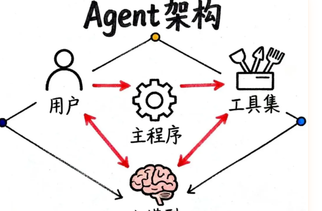 整个流程可以这样理解:用户是"客户",Agent主程序是"项目经理",大模型是"技术总监",工具集是"执行团队"。项目经理接到客户需求后,向技术总监汇报;技术总监制定方案,由项目经理分配给执行团队;执行结果再反馈给技术总监,直到项目完成。