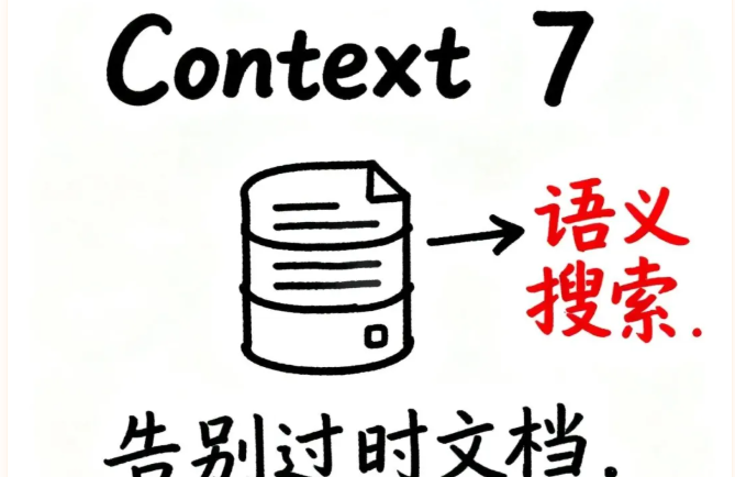 Context 7做的事情很简单:它维护了一个不断更新的文档向量数据库,用语义搜索把最新、最相关的文档片段直接喂给AI。