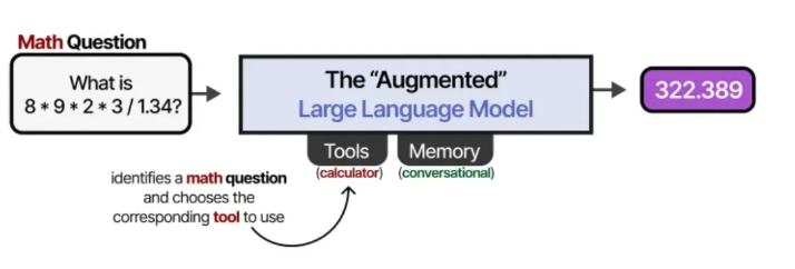 例如,当遇到一个数学问题时,大语言模型可以决定使用合适的工具(比如一个计算器)。