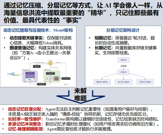 记忆:长期记忆易丢失、混淆,现有技术仅优化记忆效率,尚未解决意义构建层面的精准记忆难题;