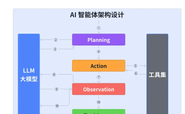 - Prompt(提示词):用于引导大语言模型(LLM)的行为,定义可用的工具集,输出为JSON格式,指示下一步操作(如工具调用或函数调用)。