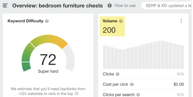 正如你所看到的,尽管有显着不同的搜索量,这些关键词有几乎相同的关键词难度(KD)分数。这就是为什么使用支持长尾关键词作为主要关键词可能不是最好的主意的主要原因之一。