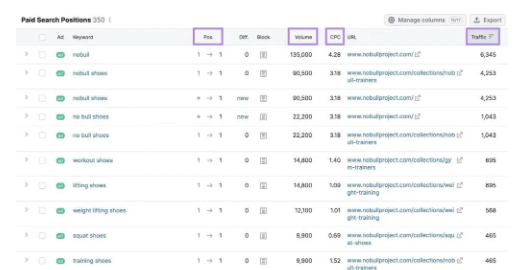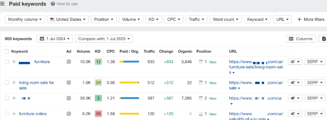 关键词列表:他到底在买哪些词,哪些词是核心。