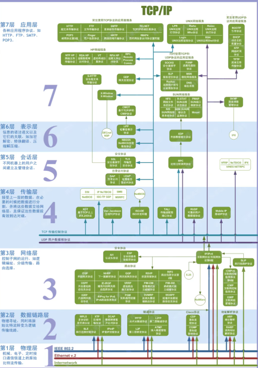 - 包含的主要协议:FTP(文件传送协议)、Telnet(远程登录协议)、DNS(域名解析协议)、SMTP(邮件传送协议),POP3协议(邮局协议),HTTP协议(Hyper Text Transfer Protocol)。
