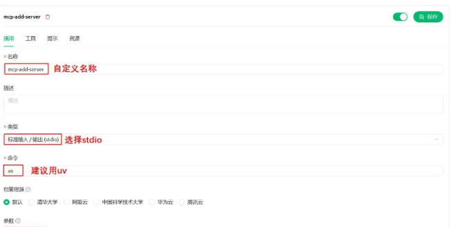 - 名称: 自定义一个名称,例如 "MyMCPDemo"