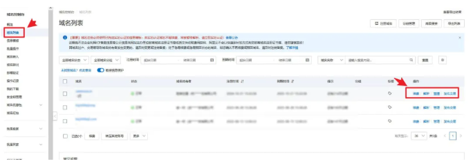 歩棸 4、管理查看域名信息,访问 https://dc.console.aliyun.com 查看当前账号购买的域名,并进行解析等相关管理