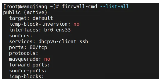 firewall-cmd --list-all
