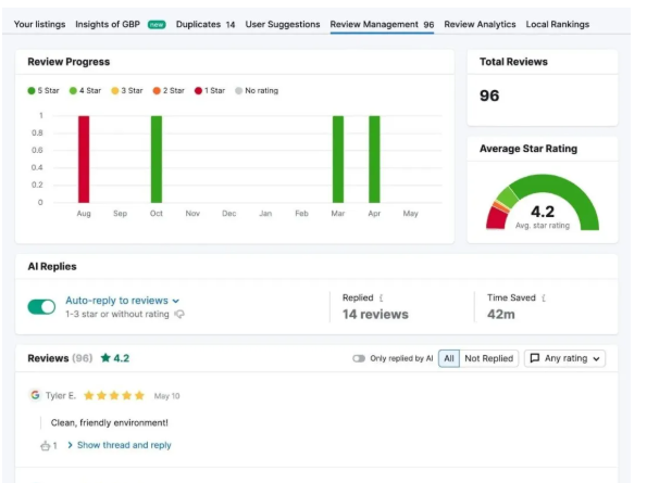 使用 Semrush 的评论管理工具跨平台跟踪评论。
