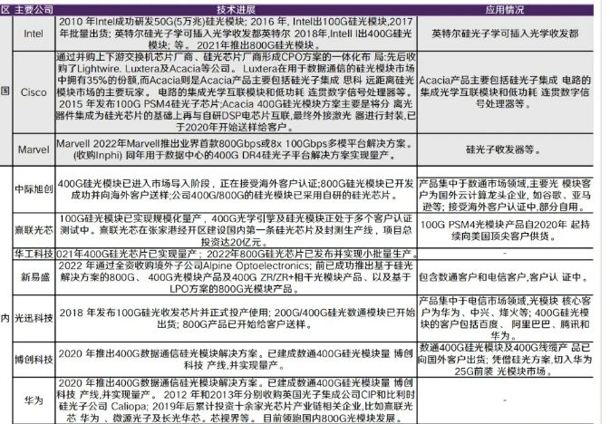 光模块这部分我之前接触不多,下图从一个报告里找到的,美国的品牌有Intel、Cisco、Marvel等,国内品牌有中际旭创、新易盛、华为、光迅科技等,不确定是否全面,如果不全大家可以评论区帮忙补充!