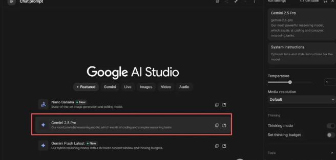 这里我以aistudio为例,一定要先确定好模型,我们选择Gemini 2.5pro,再上传参考视频,并输入提示词: