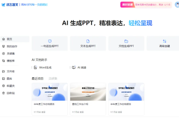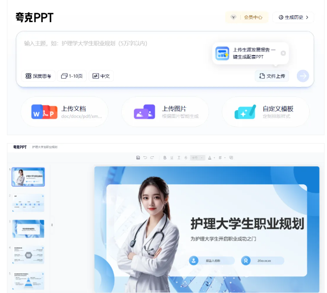 百度文库的智能 PPT,支持输入主题生成、文件/图片转为 PPT。