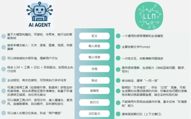 要真正理解智能体,我们得先搞清楚一个核心问题:它和普通的大语言模型(LLM)到底有什么区别?