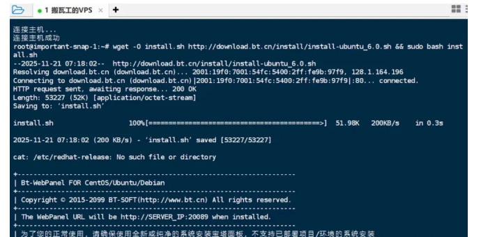 apt update -yapt upgrade -yapt install wget -y会刷一大堆英文,别慌!安静等待几分钟,看到最后出现光标就说明成功了。这一步大概1-3分钟,相当于给服务器打疫苗+装个下载工具。