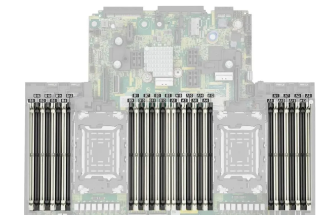 | 处理器 1 | 插槽 A1 和 A9 | 插槽 A7 和 A15 | 插槽 A3 和 A11 | 插槽 A5 和 A13 | 插槽 A4 和 A12 | 插槽 A6 和 A14 | 插槽 A2 和 A10 | 插槽 A8 和 A16 |