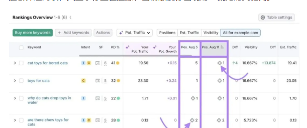 使用Semrush的定位追踪工具,查看你的内容是否出现在AI概览中,以及这种可见度随时间的变化。