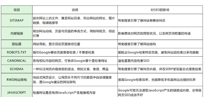 在打造 SEO-Friendly 的网站架构时,我们会优化以下技术性 SEO 项目: