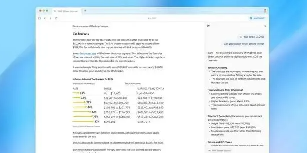 ChatGPT 内嵌于浏览体验:在 Atlas 中,打开任意网页,右侧即有 ChatGPT 辅助,你可以直接对网页内容提问、摘要、改写,而无需跳转或复制粘贴。