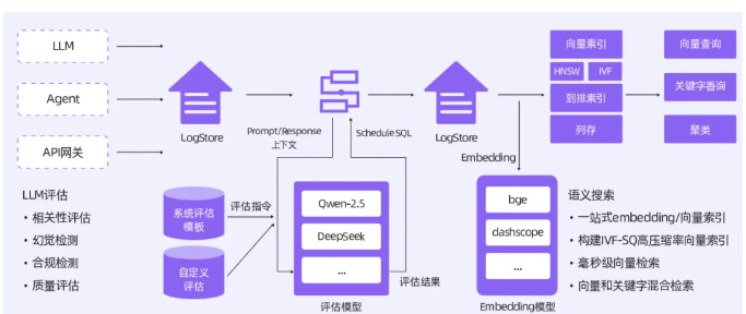 云监控 2.0 在 SQL/SPL 中提供评估算子,与预处理无缝衔接,内置 Qwen 等先进大模型作为裁判,也支持接入自有模型。