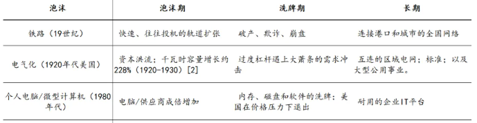 换言之:泡沫总会使部分投资者蒙受损失,但其所创造的基础设施容量却是持久的。