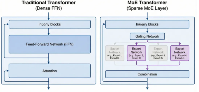 MoE的核心思想可以类比为「专家咨询系统」。想象一个大公司有多个领域专家,不同问题由相应专家处理,而不是所有问题都惊动所有专家。