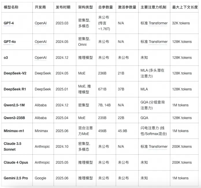 1.效率(Efficiency):通过稀疏化(MoE)和先进的注意力机制(MLA、混合注意力)实现。效率创新使得巨大的模型规模和超长的上下文处理在经济上具有可行性,为后续发展奠定了基础。