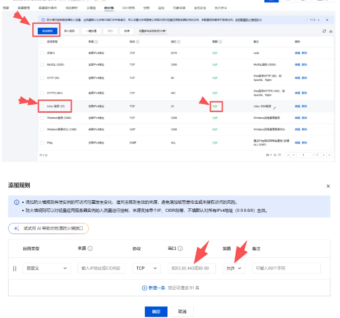 值得注意的是,如果按照上述访问连接失败,可以关注一下服务器22端口是否开放。查看端口规则的方法,我也贴在下面。