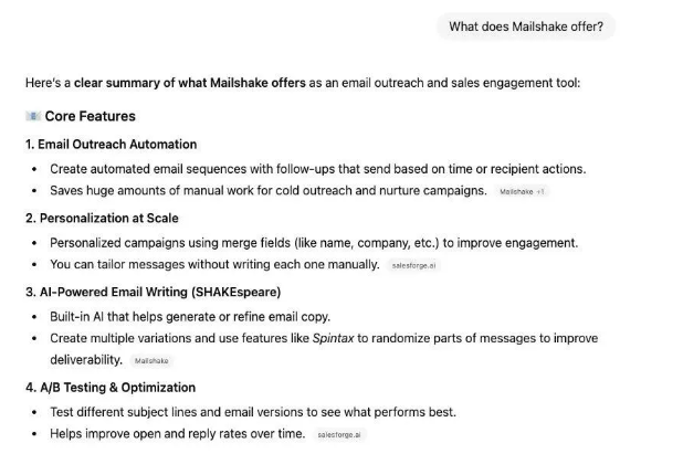 试试诸如“什么是[品牌]?”,“[品牌]提供什么?”,“[品牌产品/服务]的价格是多少?”这样的提示,看看细节是否符合你当前的信息、定价和功能。