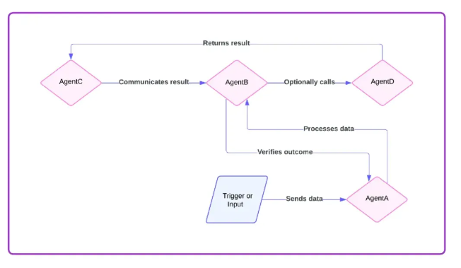 网络模式不存在主导智能体。每个智能体都有自己的工具,并直接与其他智能体通信以协调任务。像OpenAI Agents和Crew AI这样的框架就是围绕这种模型设计的。