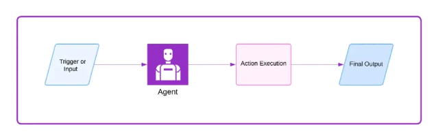 其最简形式为:单智能体系统响应触发器,处理任务,并返回输出。不涉及记忆、规划或外部交互,仅包含:输入、推理和响应。此模式适用于简单自动化或原型验证,并有助于在构建智能体应用时检验工作流和想法。