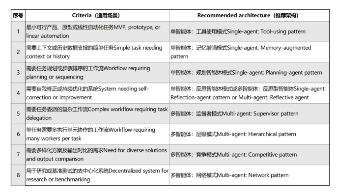 系统的工作流决定智能体采用的架构,可以帮助大家判断单智能体设置是否足够,抑或需要分布式的多智能体设计来实现目标。