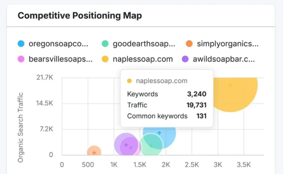 在领域概览中,“竞争定位地图”将显示以下网站: