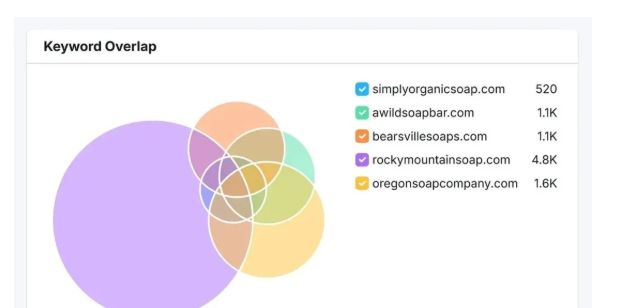 你会看到关键词重叠的概览。将光标放在图表中的交叉点上,查看你与其他网站共享的关键词数量。