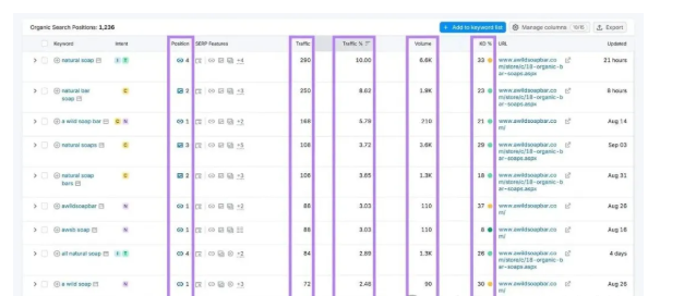 - 流量百分比:它们捕获的搜索结果(SERP)流量的百分比(占该关键词所有流量中的百分比)