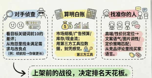 别一上来就折腾标题、五点。那叫本末倒置。真正的排名战,在产品上架前就打响了。