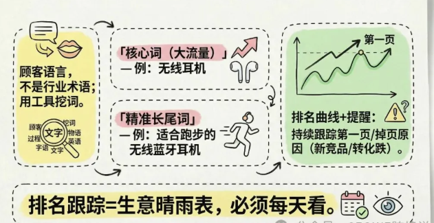 找完不是结束,是开始。你需要持续跟踪这些词的排名变化。今天还在第一页,明天掉到第三页了,为什么?是来了新竞品,还是你的转化率跌了?排名跟踪是你生意的晴雨表,必须每天看。