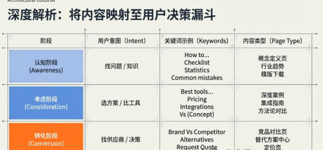 - 把搜索需求导入到清晰的产品/服务路径(内链:Awareness → Consideration)