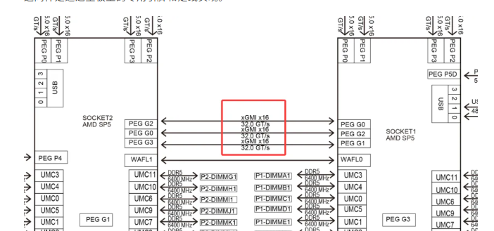 - 连接方式: 在双路服务器中,两个EPYC CPU之间通过专门的Infinity Fabric xGMI 链路直接相连。这同样是通过主板上的专用引脚和走线实现。