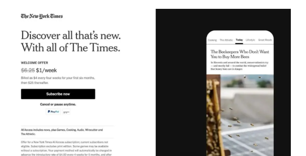 例如,《纽约时报》订阅的着陆页省略了主导航菜单和页脚,用户只能看到清晰的优惠和行动号召。